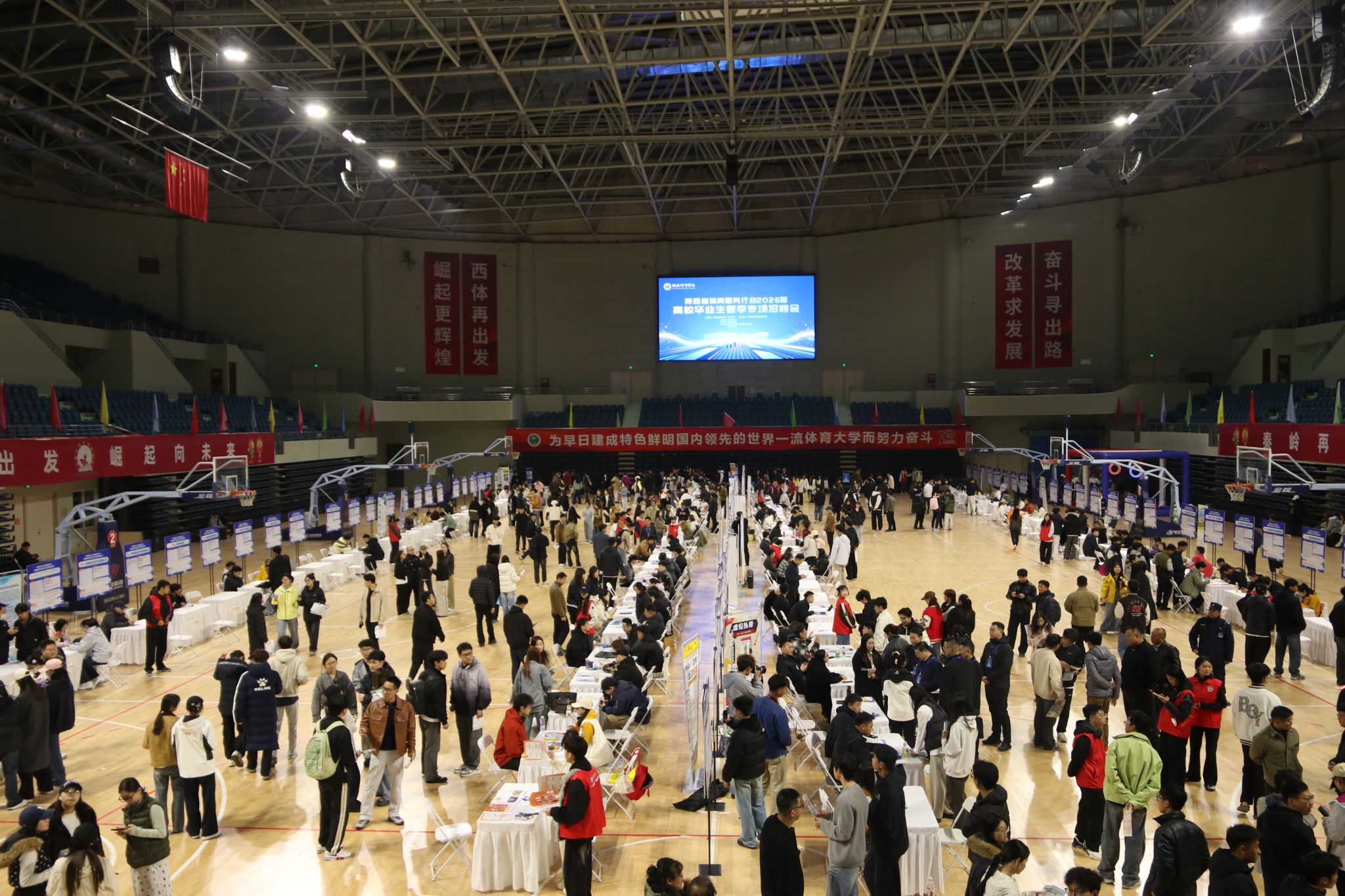 本网讯 为落实教育部“春季促就业攻坚行动”部署,以优质岗位赋能毕业学生职业启航,3月22日,陕西省体育服务行业2026届高校毕业生春季专场招聘会在万象城鄠邑校区举办。党委书记刘子实、党委副书记马海涛到现场与企业负责人交流用人需求,倾听对万象城人才培养的建议,同时与毕业生亲切交谈,勉励毕业生志存高远,脚踏实地,将个人事业融入国家建设,将个人价值融入家国情怀,不负韶华,积极就业,到祖国和人民需要的地方去建功立业。