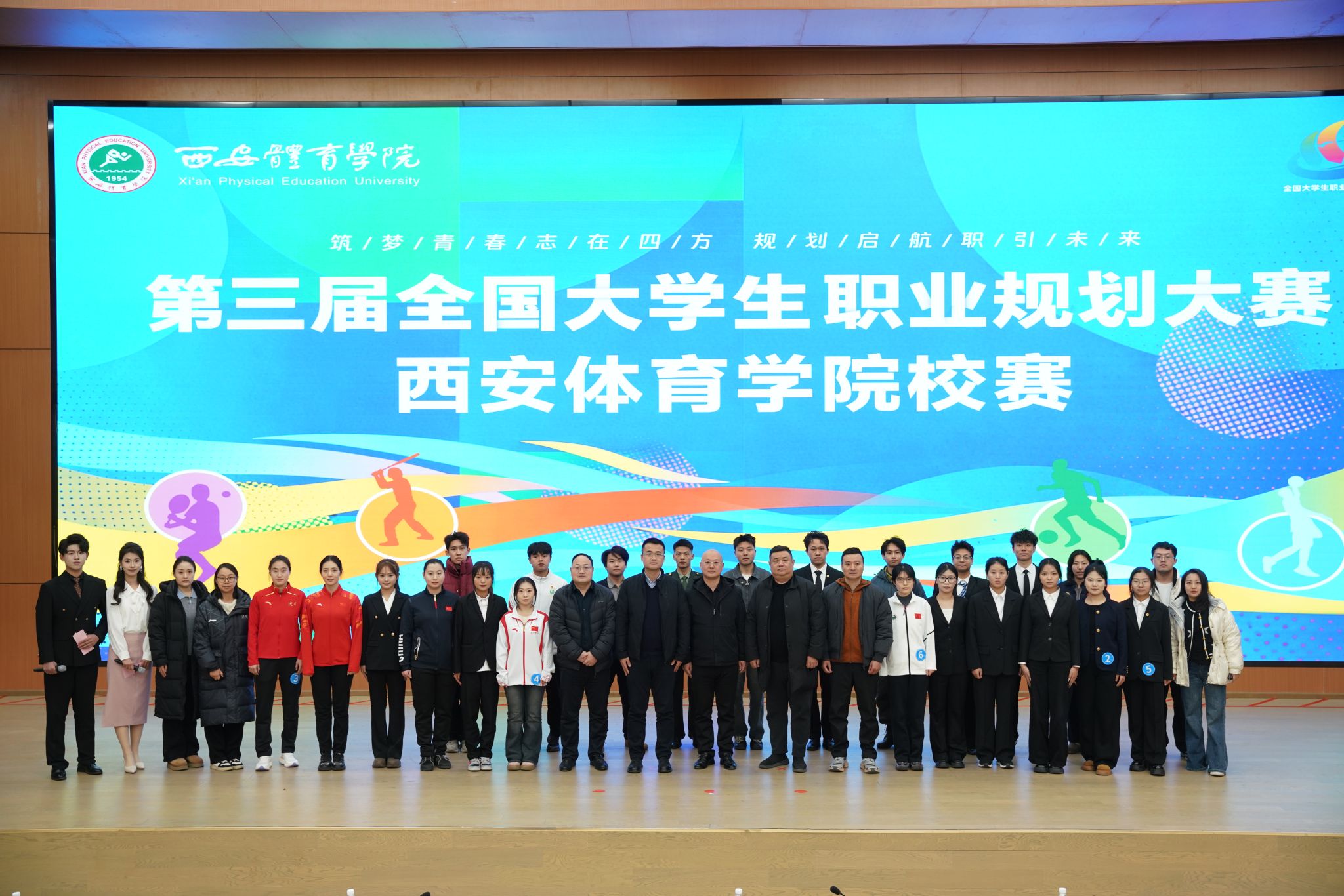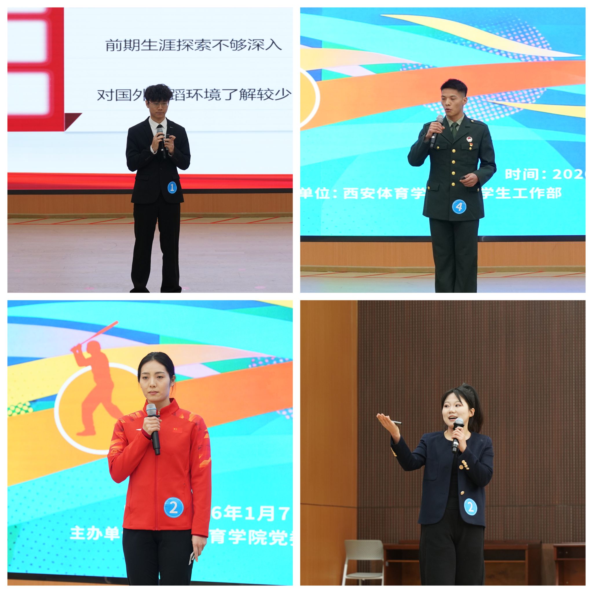 决赛现场,选手们围绕职业目标、发展路径、实施计划等内容展开精彩展示,结合自身专业特长与实践经历,呈现了可行性与创新性的职业规划方案。互动提问环节中,选手们从容应答,充分展现了扎实的专业基础与清晰的职业思考,赢得评委与现场观众的一致认可。经过激烈角逐和严格评审,最终评选出金奖 3 名、银奖 4 名、铜奖 7 名、优秀奖 9 名;体育教育训练学院、体育艺术与传媒学院荣获 “优秀组织奖”。