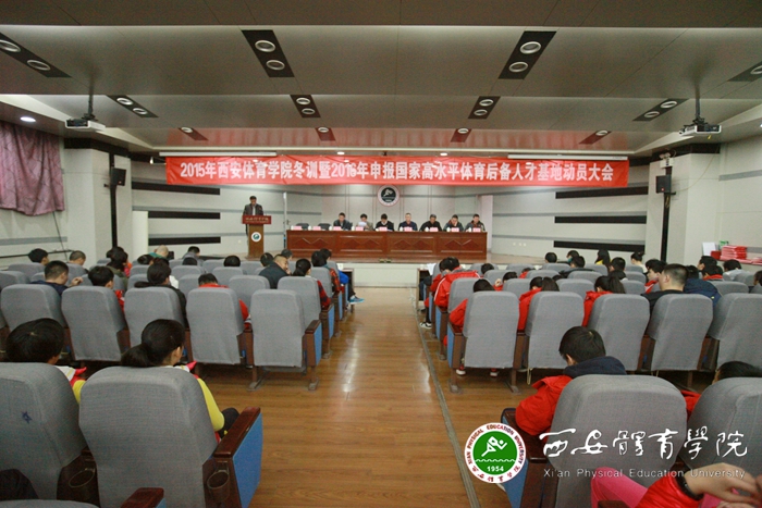 本网讯 12月22日,我院2015年冬训暨2016年申报国家高水平体育后备人才基地动员大会在教学楼一楼报告厅召开。陕西省体育局副局长董利,我院院长周里、党委副书记朱元利、副院长文立新、陕西省体育局竞技体育处处长邹军等同志出席了大会。学院相关处室负责人、竞技体育学校(拳跆中心)全体教练员、运动员、工作人员和国家青少年竞走队全体教练员、运动员参加了本次会议。大会由竞技体育学校党总支书记樊康主持。
