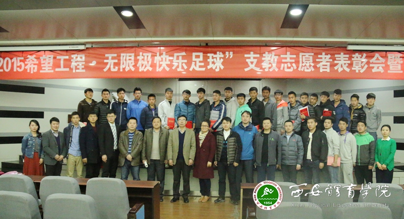 本网讯 为期2个月的足球支教活动已圆满结束,在学院上下的关心支持下,全部支教志愿者不负厚望,克服困难,潜心支教,与支教学校教师密切配合,踏实工作,发挥自身优势,均高效优质地完成了支教任务。12月4日,我院在教学楼一楼报告厅对优秀志愿者进行了表彰。院党委副书记朱元利、教务处处长高新友、学工部部长王志刚、团委书记郑璐出席了会议。出席的嘉宾有:中国青少年发展基金会项目官员张中伟、无限极(中国)有限公司外事部高级经理吴彩娟、无限极(中国)有限公司外事部经理余和平、陕西省青少年发展基金会秘书长乌刚。会议由团委副书记熊辉主持。