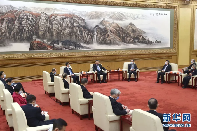 图为2021年2月,习近平、汪洋、韩正等在北京人民大会堂同党外人士欢聚一堂,共迎佳节。