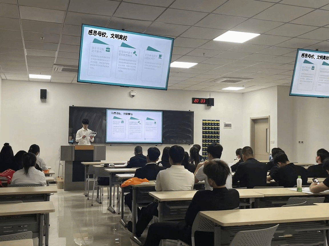 在2025届毕业生离校之际,体育艺术与传媒学院精心组织开展了文明离校教育活动与党员先锋岗实践活动。6月27日在含光校区教学楼一楼报告厅召开毕业生安全离校教育大会,提前预防可能发生的事故隐患,确保同学们安全稳定离校。6月29日晚在鄠邑校区召开毕业生离校工作动员大会,各班班长及志愿者代表参会。围绕“感恩母校·文明离校”主题,部署证书发放、宿舍整理、安全排查等工。6月26日至7月4日期间开展党员先锋岗活动,明确各岗位的职责和任务,为毕业生提供“一键打包”服务。