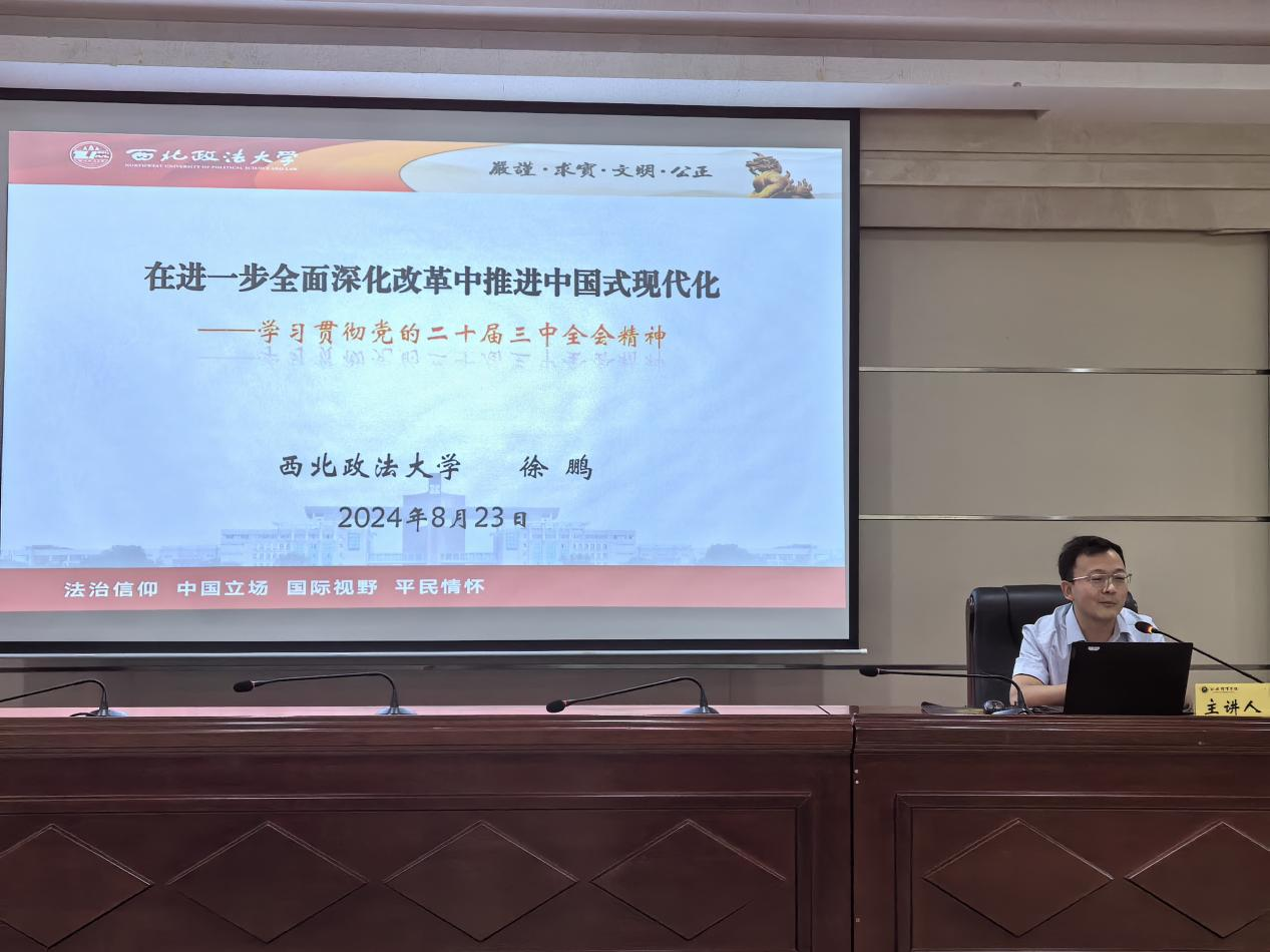为期两天的培训活动紧凑而充实。8月23日上午,西北政法大学徐鹏副教授向全体参训人员作了“党的二十届三中全会精神学习报告”。徐教授结合学工系统如何深入学习宣传贯彻党的二十届三中全会精神,深入浅出的讲解让辅导员们对党的最新理论成果有了更加深刻的理解和把握。随后,5位辅导员代表分享了前期参加外出培训的学习心得,以及各自在学生管理和思政工作中的宝贵经验和创新做法,为参训辅导员提供了丰富的实践案例和启示。