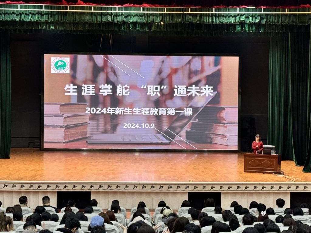 10月9日上午的活动安排得紧凑而充实。首先,教务处陈巍之老师为新生们详细解读了学校的课程设置、学分要求以及考试制度等关键信息,帮助他们建立起对大学学习生活的初步认识。紧接着,西安文理学院学生生涯发展中心主任冯宁为含光校区2024级全体新生开展了学业生涯与职业规划教育讲座,为学生提供了宝贵的职业规划指导,引导他们思考未来,明确目标。