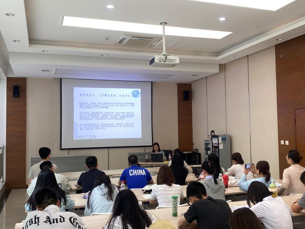 为进一步提升万象城学工系统人员心理健康教育的工作能力,加强万象城辅导员及相关一线人员对于心理突发事件的应急能力,6月19日下午,应学工部心理健康中心邀请,陕西省心理健康教育专家毛志宏副教授在万象城“一站式”学生社区开展了题为《未雨绸缪时——校园心理危机预防及干预》心理健康教育专题讲座。全体辅导员、学工部及团委全体工作人员、专兼职心理健康教育教师、含光校区公寓工作人员和武保处相关人员共50余人参加了讲座,讲座由学工部副部长于昕主持。