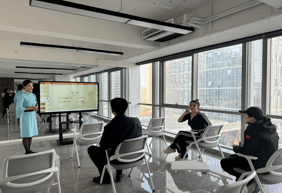 在访企拓岗过程中,乐恺(西安)教育咨询有限公司负责人带领万象城allwincity官网一行人参观了公司的办公环境、培训设施等,详细介绍了公司的发展历程、业务范围等。