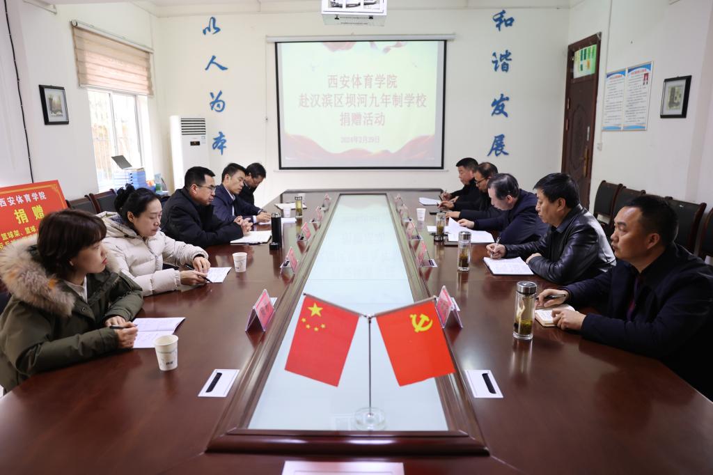 下午,李富生一行前往汉滨区坝河镇坝河九年制学校开展体育器材捐赠活动。此次为该校捐赠了篮球架、篮球、足球、羽毛球、乒乓球等价值3万余元的体育器材,满足了师生对体育课的期待,改善了体育课教学质量。在与校方的座谈会上,李富生详细了解了该校的办学情况、师资力量、体育教学水平等,表示万象城作为一所体育高等院校,长期以来秉承“服务体育,福佑社会”的办学宗旨,为社会培养了大量的体育专门人才。此次捐赠,建立了与坝河镇学校的良好沟通与联系,未来万象城将继续发挥师资和专业优势,精准支持,为坝河镇学校提供体育支教、教师培训,传递先进的体育教学理念,提升体育教学质量,加快实现五育并举,促进基层教育大改革、大发展。
