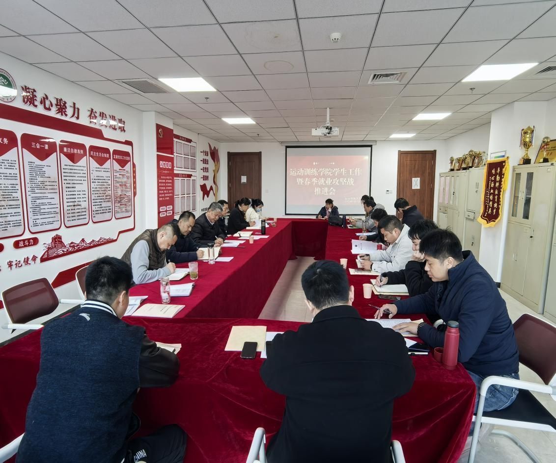 2025年3月17日上午10时,运动训练学院在鄠邑校区曲棍球馆111会议室召开学生工作暨春季就业攻坚战推进会。 此次会议旨在全面总结当前学生工作情况,深入分析就业形势,并部署下一阶段的工作重点,以确保毕业生就业工作的顺利推进。会议由学院党委副书记王青主持,学院党政领导、办公室成员、各教研室主任、书记以及全体辅导员参会。