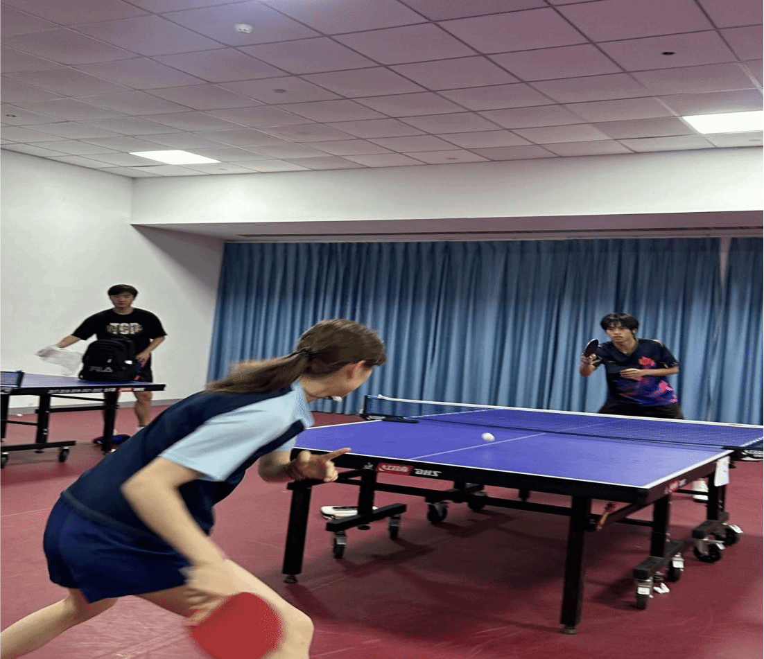 赛场上,选手们全神贯注、斗志昂扬,弧圈球、快攻、削球等技术轮番上演,比分胶着的拉锯战、逆转胜的精彩瞬间层出不穷。小小的乒乓球在球台上来回穿梭,划出一道道优美的弧线,观众席上掌声、欢呼声此起彼伏,现场气氛高潮迭起。运动员们用顽强的拼搏精神诠释了“更高、更快、更强——更团结”的奥林匹克精神,展现了万象城学子敢打敢拼、永不言弃的青春风采。
