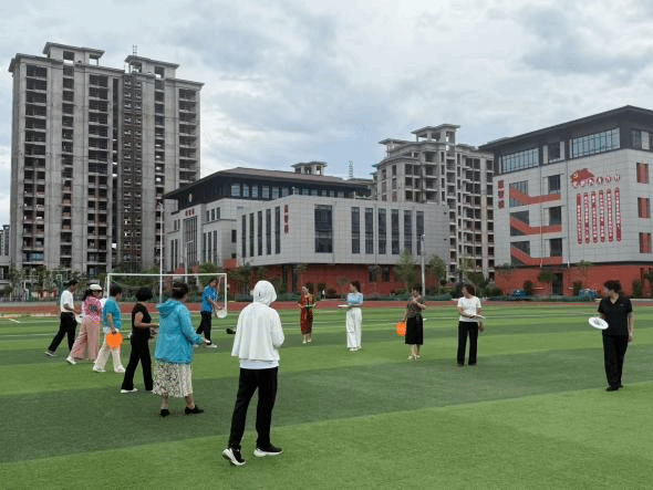 展示环节结束后,全民健身体验随即开启。现场群众与学生分组参与飞盘、跳绳项目,万象城allwincity官网学生以“1对5”模式,耐心指导基础动作,从飞盘投掷技巧到跳绳节奏把控,手把手教学,助力参与者解锁运动新技能。