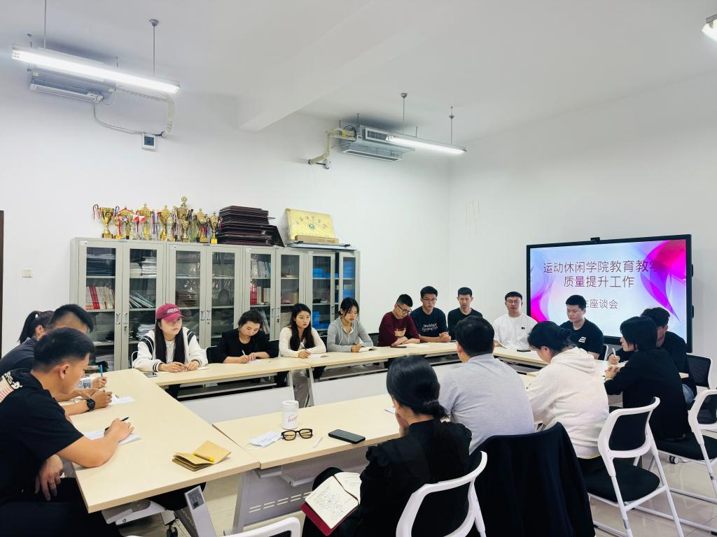 自“十大改革发展工程”战鼓擂响以来,运动休闲学院严格落实学校党委行政决策部署,及时传达会议精神,加强学习,重点围绕教育教学改革质量提升工程,不断强化教学、学风、工作作风建设。为进一步提高学院教育教学和人才培养质量,倾听学生心声,了解学生们的问题和诉求,有针对性地开展教育引导,充分听取和征求学生的意见和建议,4月18日,运动休闲学院召开学生座谈交流会,学院党政领导班子、学工办、辅导员、研究生及本科生班干部、学生代表出席会议。座谈会由运动休闲学院副院长胡婕婷主持。