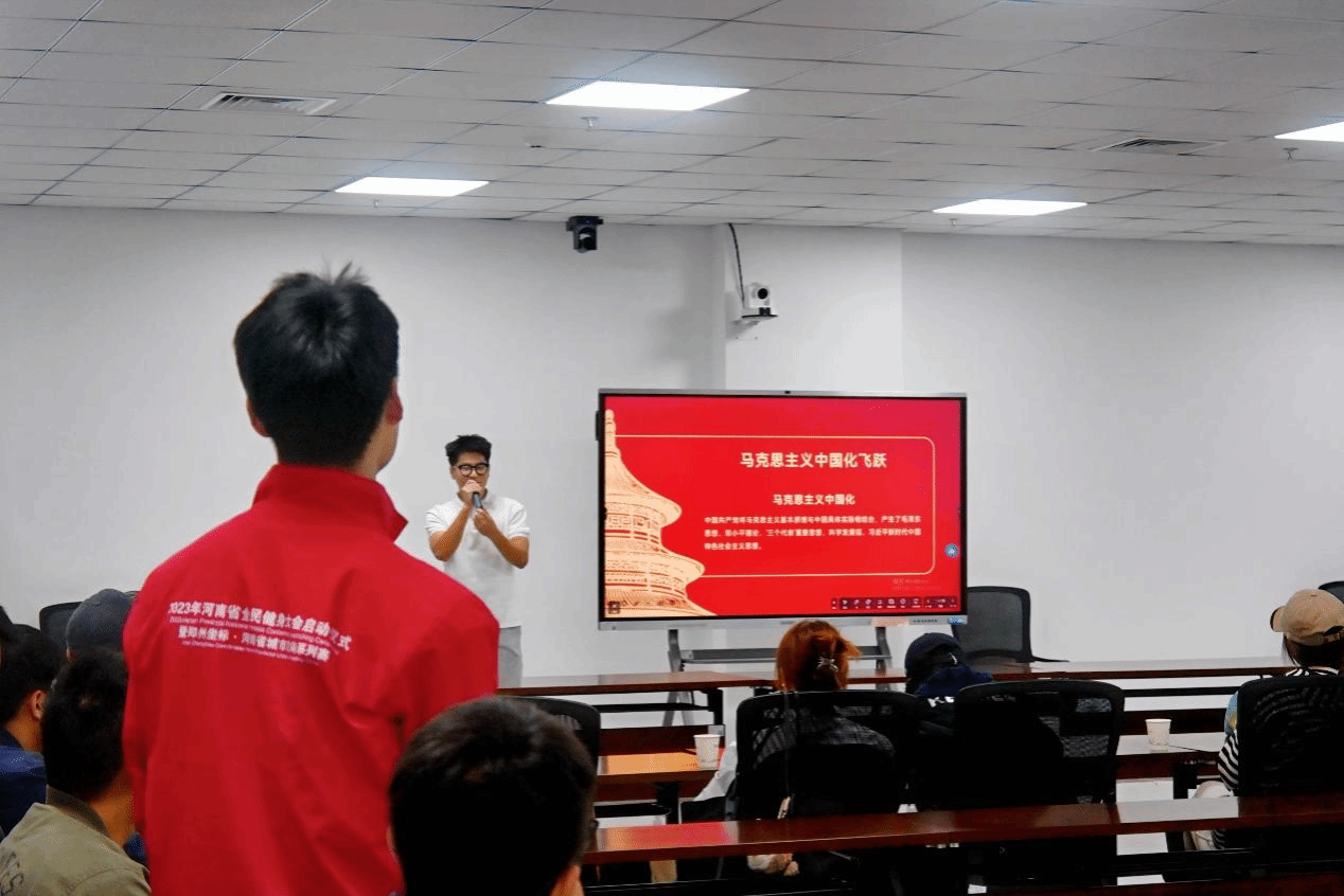 轻松有趣的互动,不仅考验了同学们的阅读积累,更瞬间将大家的思绪引向了那段波澜壮阔的峥嵘岁月,为后续的深度分享营造了浓厚氛围。随后的核心环节是四位学生代表分别就《共产党宣言》的不同章节进行深度解读与感悟分享。