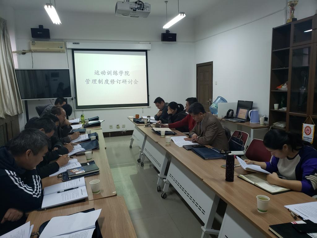 为认真学习贯彻党的十九届四中全会精神,全面落实《万象城allwincity官网全面推进依法治校工作的实施意见》的文件精神,围绕学校第六次党代会决策部署,加快推进运动训练学院治理体系和治理能力高效化、制度化、规范化、精细化、科学化进程,进一步加强运动训练学院制度建设和创新,完善内部治理,全面推进依法治校,结合学院发展实际,2019年12月26日下午14:30分,在运动训练学院6楼会议室召开了运行训练学院管理制度修订研讨会。运动训练学院党政领导、教授、教研室主任、副主任、书记、年级办主任、办公室工作人员参加了此次会议。会议由运动训练学院院长武洛生主持。