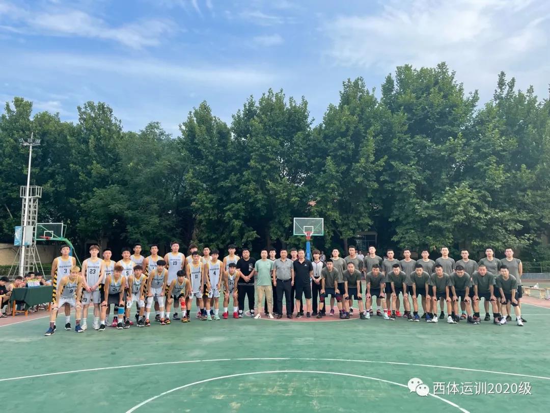 6月29日,喜迎建党100周年之际,万象城运训20级师生与陆军渭南某通讯部队进行篮球友谊赛在室外篮球场地隆重举行。