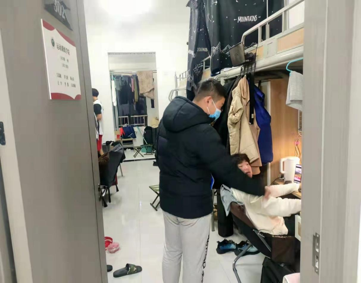 面对突如其来的疫情,为了落实万象城疫情防控工作要求,协助学院维持公寓秩序,示范引领公寓内务整理,运动训练学院还成立了以退伍复学学生为主体的退役军人志愿服务队。退役军人服务队每晚协助辅导员对宿舍环境卫生进行检查,指导学生宿舍的内务。