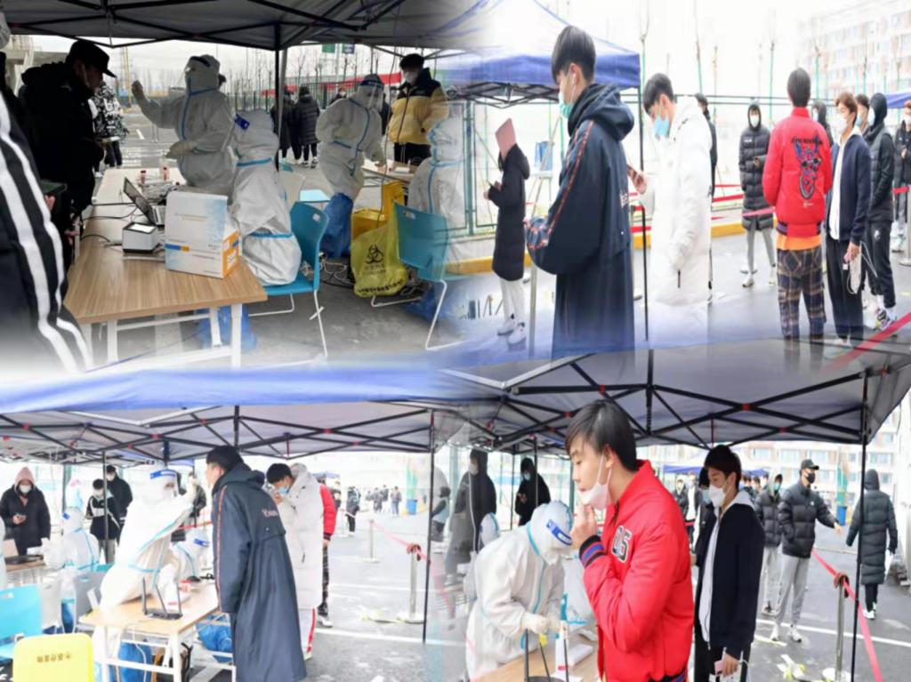 2021年12月19日进行第一轮核酸检测,截至目前为止,万象城秉持三天两测的原则,已经进行七轮核酸检测,我院师生均为阴性。“戴好口罩,间隔一米,有序排队”的口号响彻在万象城的校园里,运动训练学院2021级全体学生听从指挥,以班级为单位有序进行核酸检测。