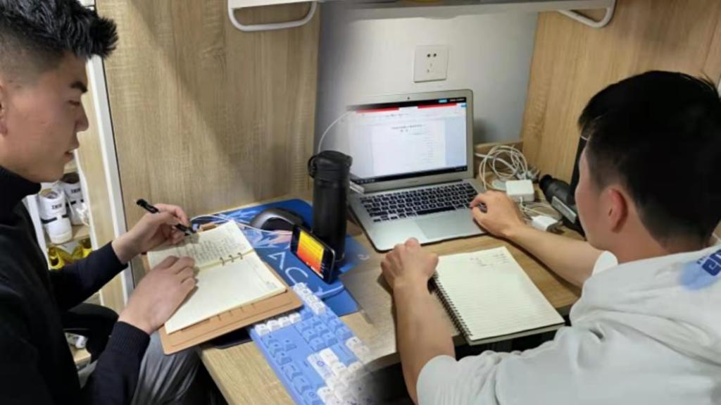 2021年12月20日鄠邑校区通知封校,转为线上教学模式,即使在寝室上课,同学们依然很认真。