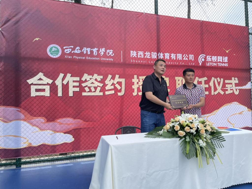 王鑫为小王子陕西小王子体育传播有限公司创始人陈刻铭颁发“实习实训创业就业联盟会员单位”