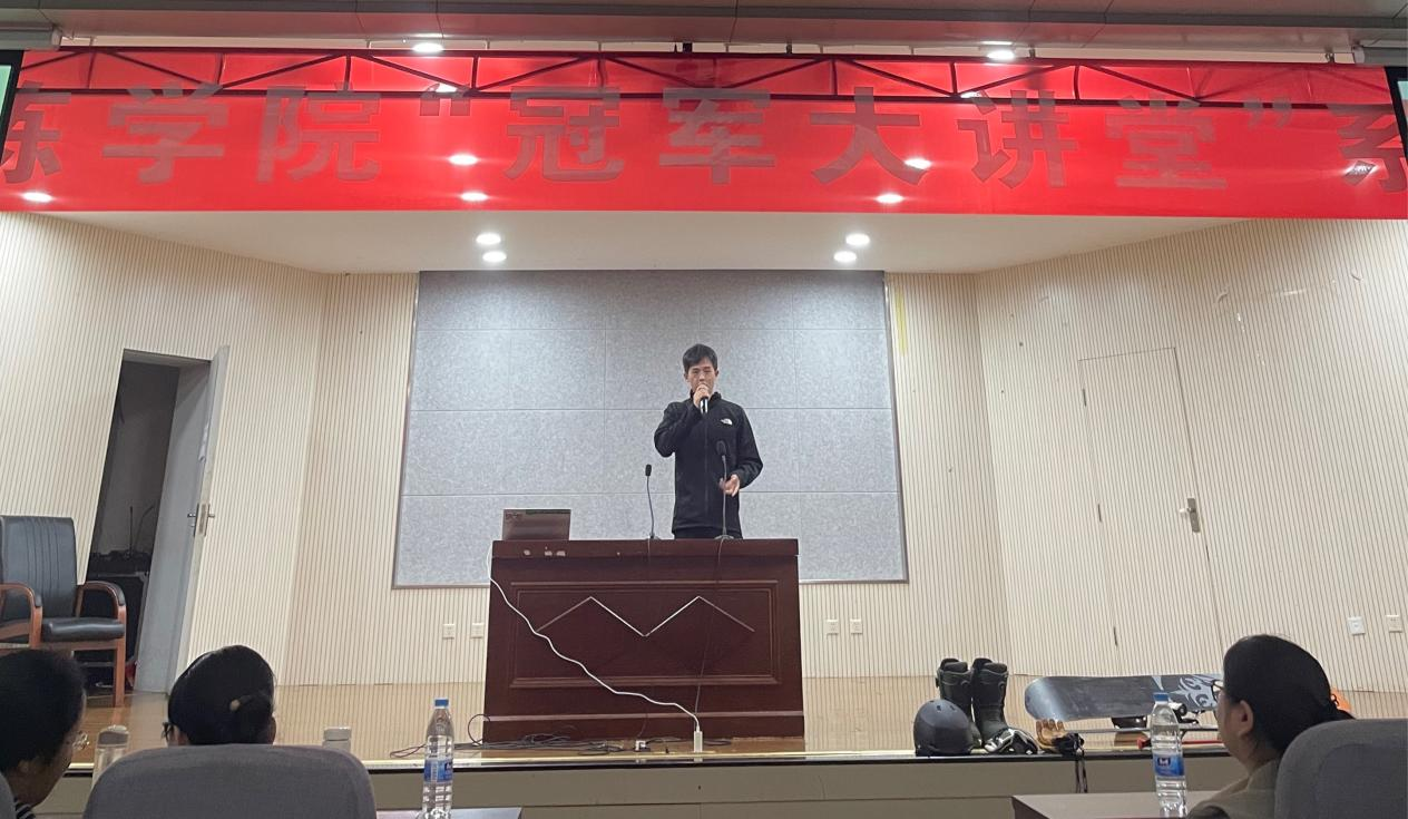 在我院深入开展学习贯彻习近平新时代中国特色社会主义思想主题教育开展之际,为进一步增强体育专业的吸引力,教育引导广大青年学生用冠军精神,锤炼意志品质,胸怀体育强国的使命,奋发有为,运动训练学院特开展“冠军大讲堂”系列活动。