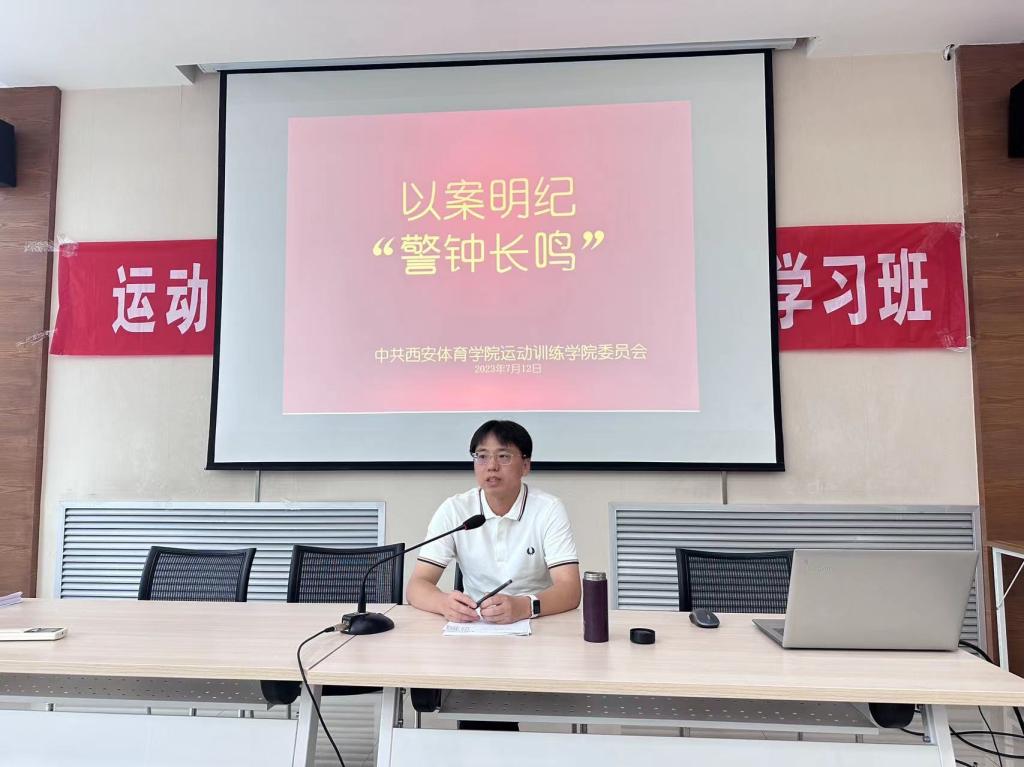 为全面贯彻落实立德树人根本任务,加强师德师风建设,扎实推动主题教育走深走实,7月12日下午,运动训练学院在二号行政楼4号会议室开展师德师风专题警示教育会,大会特邀校纪检监察室主任李抢辉作专题报告,会议由运动训练学院副院长郑峰主持,学院领导班子成员、全体教职工参加会议。