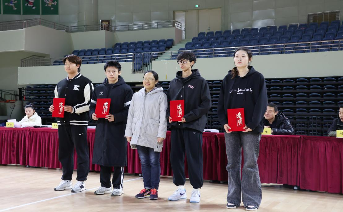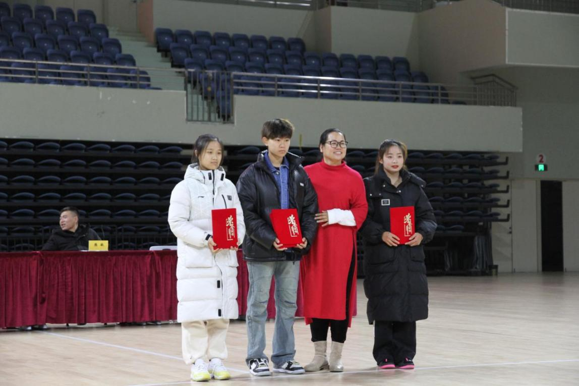 两位体操专项的同学为活动带来了精彩绝伦的表演,令人赞不绝口,接下来是运动训练学院党委书记王鑫老师为2023级女生“趣味活动赛”获奖班级颁奖。