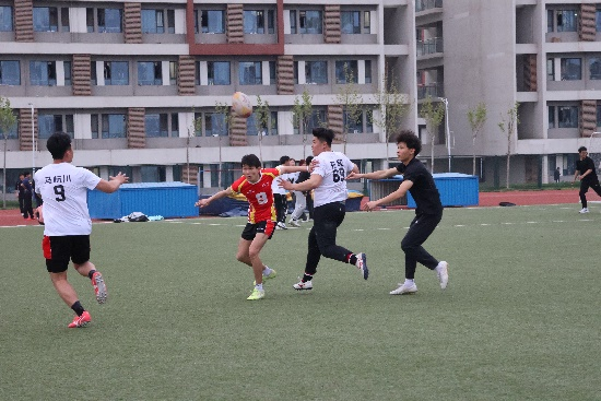 “青年风采,动‘橄’校园”橄榄球比赛。宽阔的操场上,2023级的年轻学子们正在进行激烈的橄榄球比赛。球员们身手矫健,他们飞快地奔跑着,追逐着那颗象征着胜利的橄榄球,巧妙地运用战术,试图突破对方的防线。球员们在这样的氛围中奋勇拼搏,尽情释放着自己的能量。
