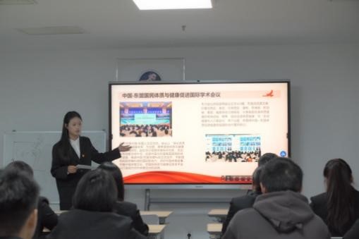 房鑫同学领学“习近平总书记接见第33届奥运会中国体育代表团重要讲话精神”。习近平强调,中国体育代表团坚持拿道德的金牌、风格的金牌、干净的金牌,弘扬了体育道德风尚,赢得了广泛尊重认可,充分展现了新时代中国形象。赛场上,大家遵守规则、尊重对手、尊重裁判、尊重观众,保持良好的赛风赛纪和文明礼仪,胜不骄、败不馁,在竞技上、道德上、风格上都拿到了金牌。通过代表领学鼓励同学们要牢记总书记的嘱托,以更加饱满的热情和更加坚定的信念投入到体育事业中去,为实现体育强国目标贡献自己的力量。