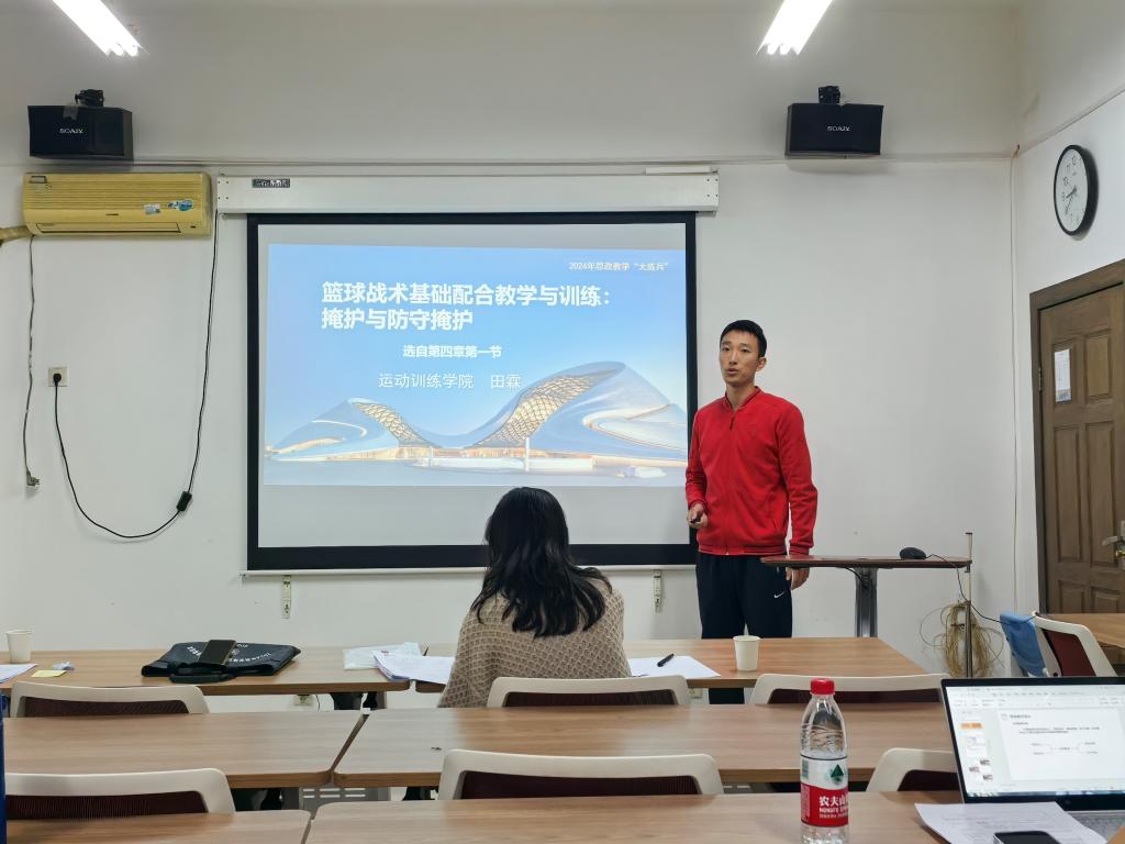 本次思政教学“大练兵”活动经过各教研室教师踊跃报名和教研室推荐,共有来自篮球、排球、乒羽和重竞技四个教研室的5位教师参赛。