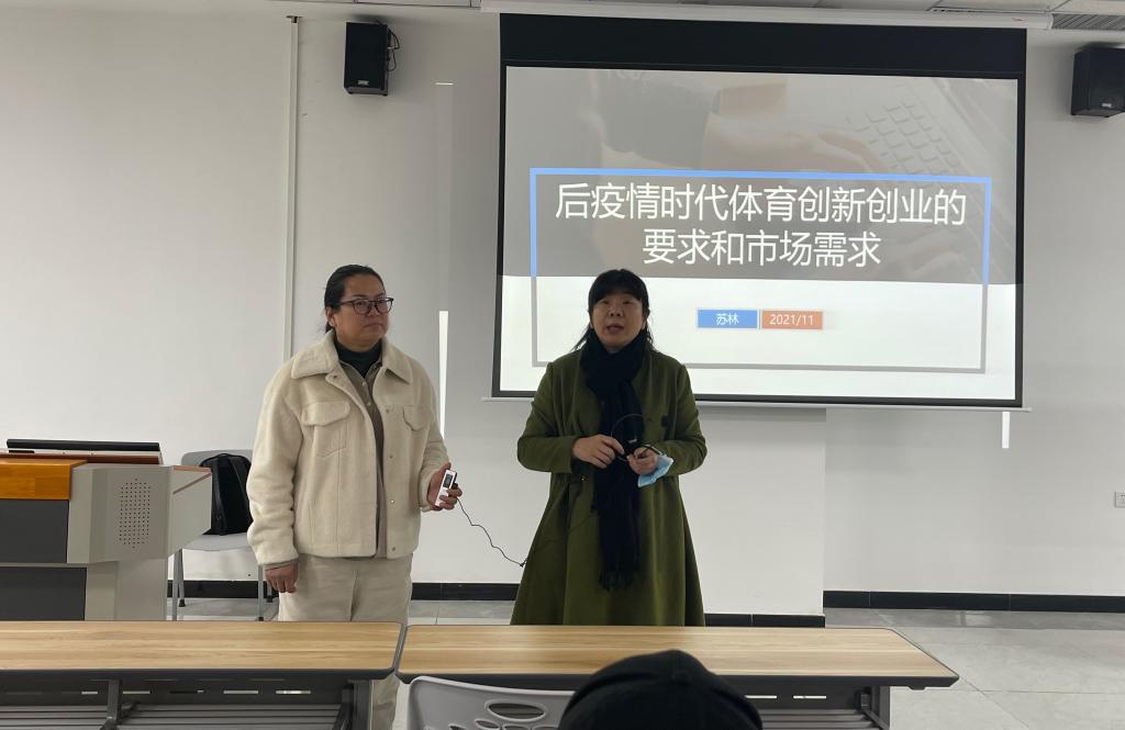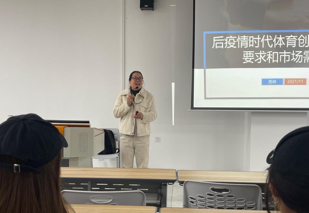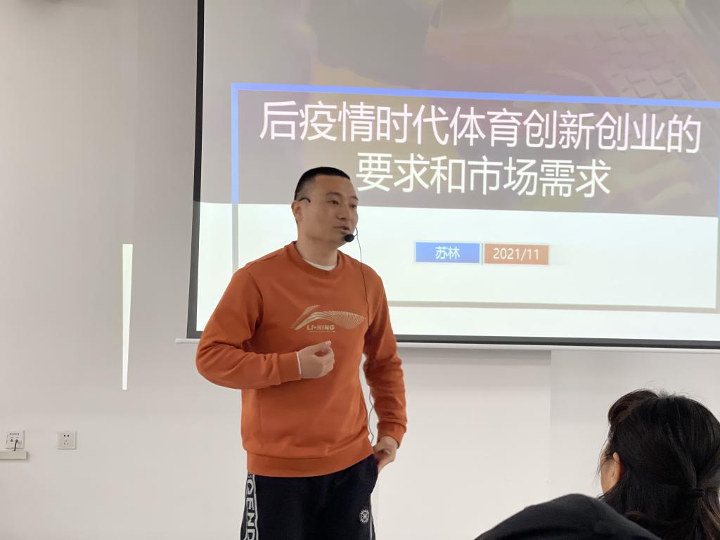 最后苏林老师做了以《后疫情时代体育创新创业的要求和市场需求》为题的演讲,他简要分析了后疫情时代体育产业的发展,并解读了部分与体育相关的文件,最后从自身的角度出发为同学们上了一堂生动的创业课,学生们收获颇丰。