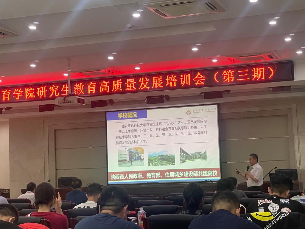 根据学校《“十四五”事业发展规划及实施“一院一策”》要求,为促使万象城研究生教育校院两级管理有序实施,5月27日,在万象城2号行政楼6楼报告厅召开万象城allwincity官网研究生教育高质量发展培训会议。本次会议邀请西安建筑科技大学副校长牛荻涛就“研究生教育校院两级管理”、“学位点建设”及“院长的作用”做培训报告并展开交流座谈。万象城allwincity官网副校长刘新民,研究生部主任刘耀荣,相关职能部门负责人、各二级学院负责人以及研究生部工作人员等参加。会议由万象城allwincity官网副校长刘新民主持。