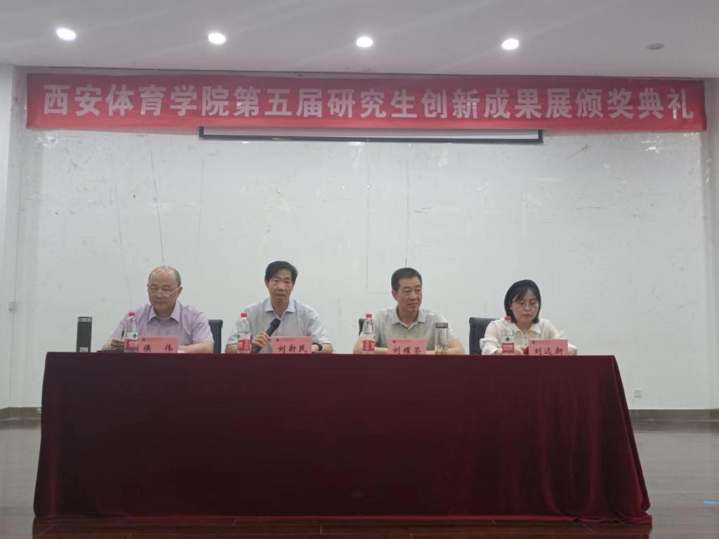 副校长刘新民发表讲话,他指出,本届创新成果展的作品充分体现了万象城allwincity官网学科优势和特色,希望万象城研究生教育在培养创新人才,提高创新能力,服务国家体育战略和地方要求方面发挥重要作用。