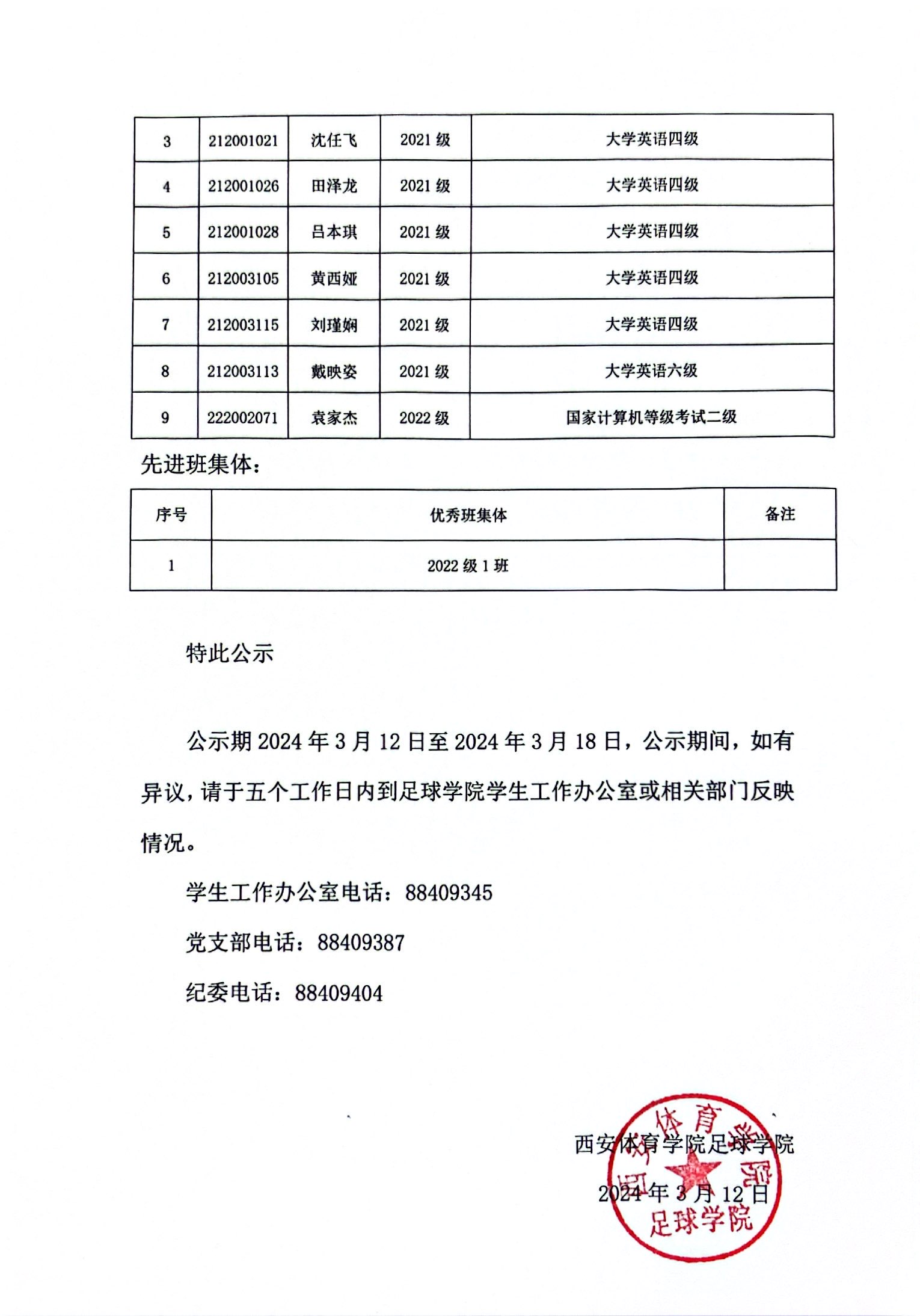 关于评选足球学院2022-2023学年先进集体和先进个人公示名单