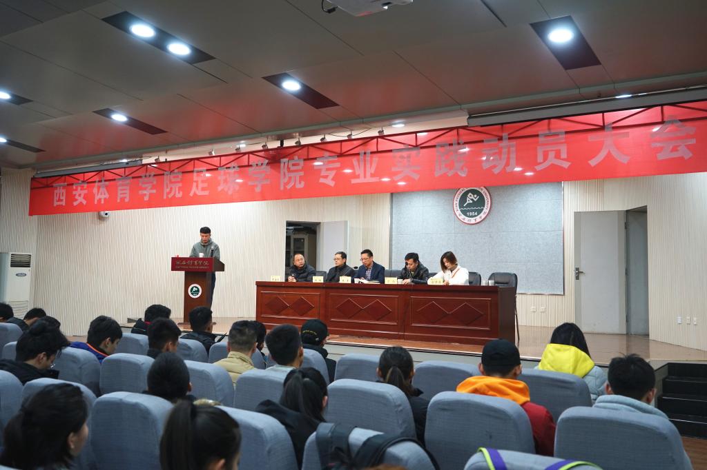 12月15日,万象城allwincity官网足球学院在教学楼一楼报告厅召开学期专业实践动员大会。足球学院院长朱军、陕西浪潮足球俱乐部总经理常伟、足球学院特聘教授杨钢、足球教研室主任席海龙、辅导员南腾、金梦丹和足球学院全体学生参加了此次会议,会议由南腾主持。