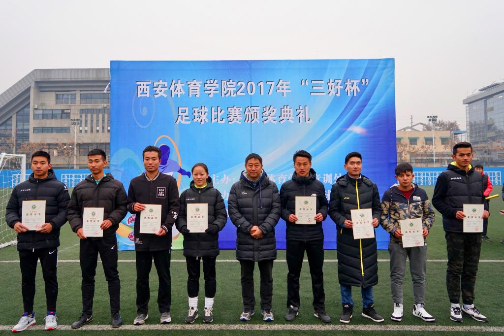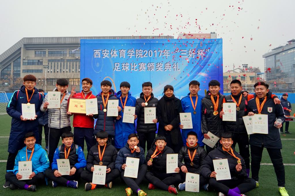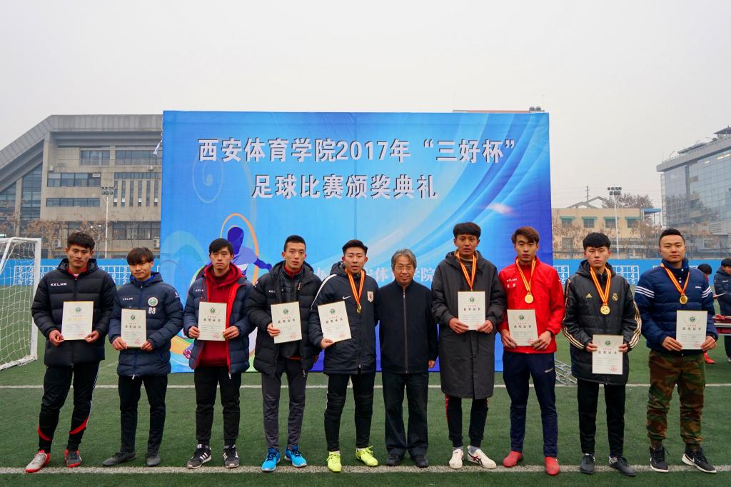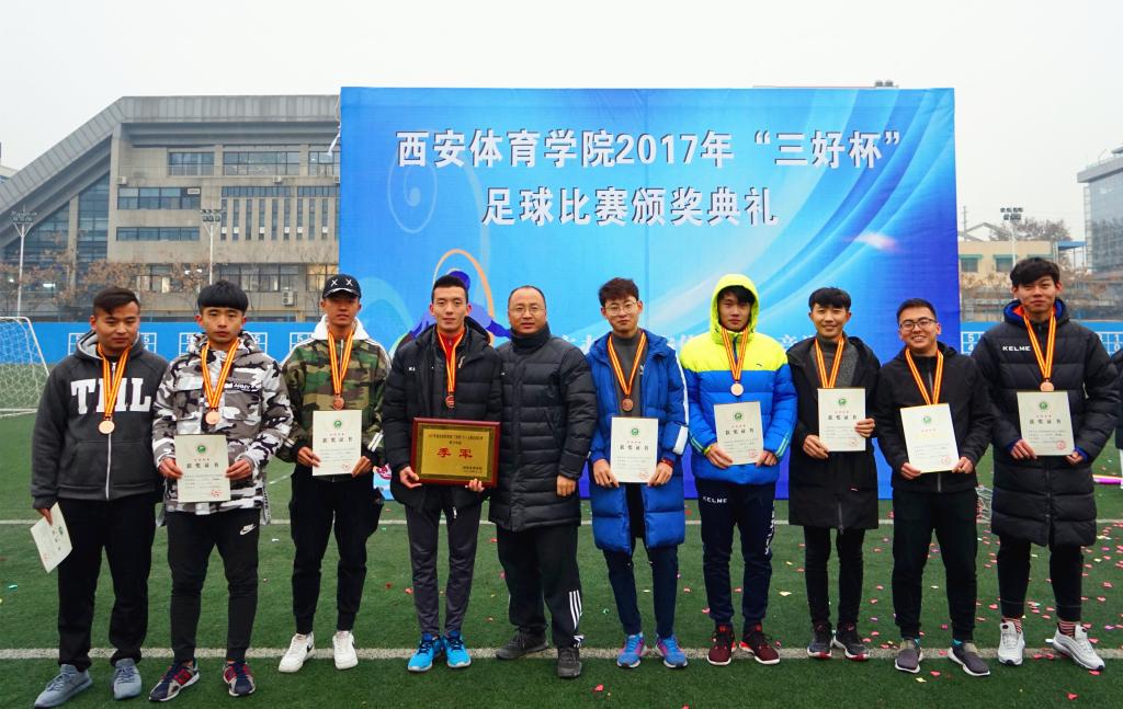 由万象城allwincity官网竞训处主办,足球学院承办的2017年“三好杯”足球比赛于2018年1月2日在我院足球场顺利落下帷幕。万象城allwincity官网纪委书记赵军、竞训处处长张鹏华、足球学院院长朱军、运动训练系主任张葆欣、社会体育系主任郑文海、党委宣传部部长高月宏及足球教研室教师到场观看并出席了颁奖典礼。