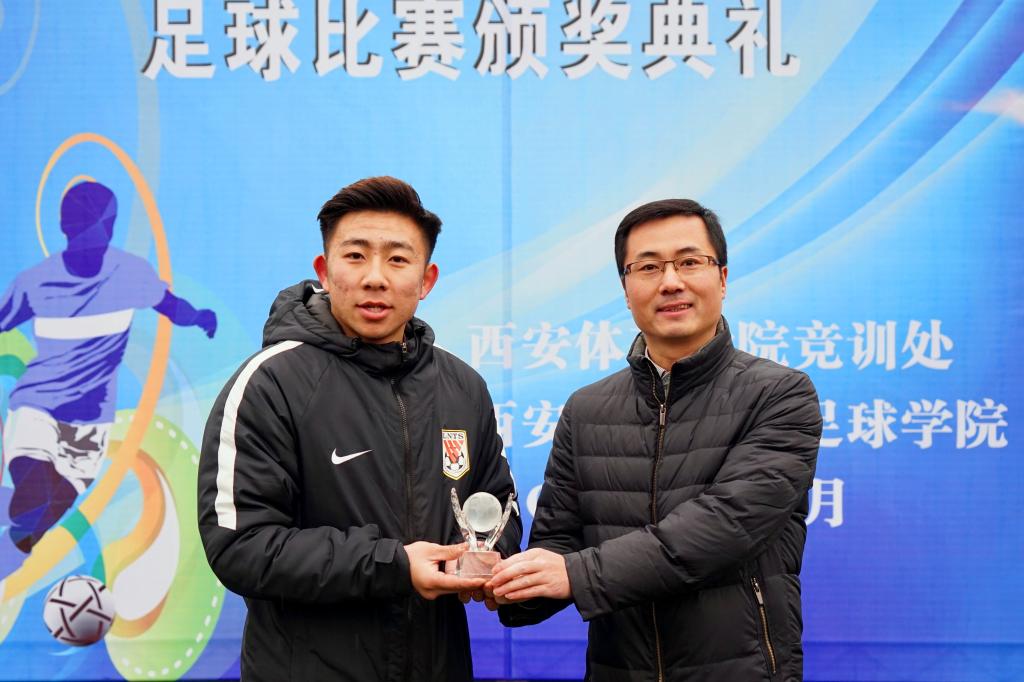 足球教研室主任席海龙为“男子甲组季军”颁奖