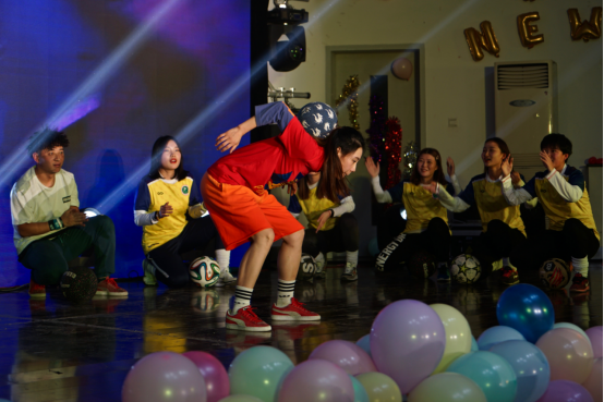 此次晚会由足球学院学生自编、自导、自演,并有西安外国语学校学生助阵,在相关老师及同学们精心设计与细心筹备下,涵盖了歌曲、舞蹈、相声、小品17个节目,主题鲜明,精彩纷呈,高潮迭起,赢得了在场观众的一致好评。足球教研室王莎莎老师带来的花式足球节目更是点燃全场高潮,充分彰显了我院学生积极向上、青春活力、团结友爱的精神风貌。