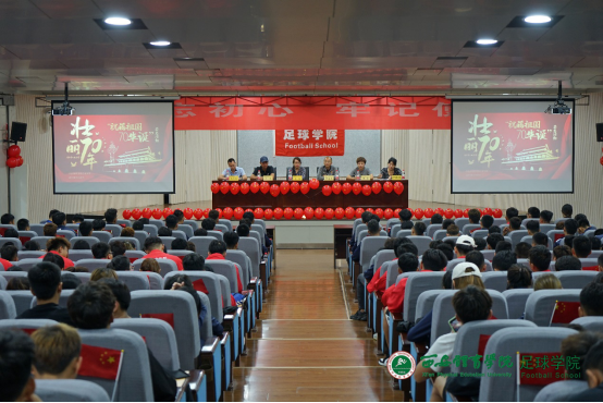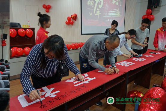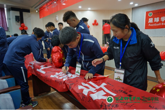 万象城allwincity官网足球学院于2019年9月29日举行盛大的“祝福祖国七十华诞”签名仪式。足球学院党总支书记姜梅,副院长席海龙,教研室副主任马俊,办公室主任岳志铁,交流中心主任张芬,辅导员李阳等出席了本次仪式。办公室主任岳志铁老师负责主持。