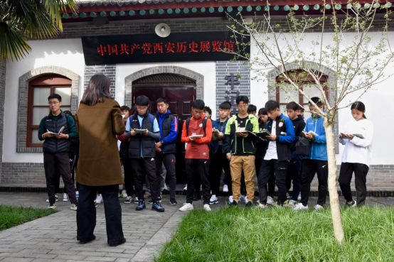 自学院开展主题教育以来,足球学院始终将“学习教育、调查研究、检视问题、整改落实”贯穿始终,经过调查,针对发现的学生入党积极分子培养问题和学生未发展党问题,党政班子即知即改、即行即改,查明情况后,于近日着手开展学生党员发展对象确定和考察工作。按照《中国共产党发展党员工作细则》规定,为进一步加强对入党积极分子培养工作,足球学院党总支于10月30日在八路军西安路办事处纪念馆,开展入党积极分子党课教育活动,足球学院副院长席海龙、足球教研室党支部教师党员参加此次活动。