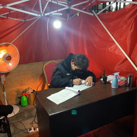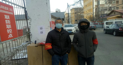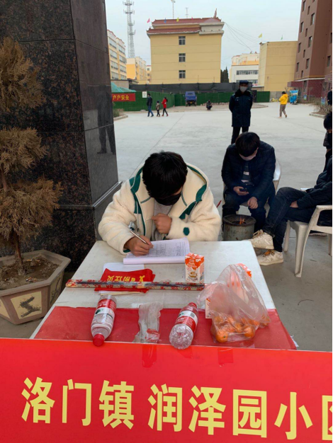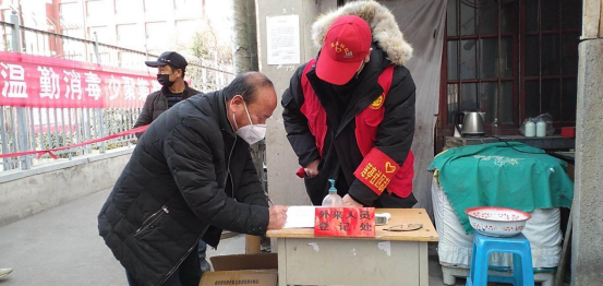 源社区润泽园小区担任志愿者,主要负责登记出入小区人员名单,防止外来人员入内。