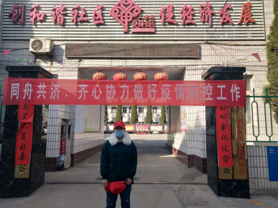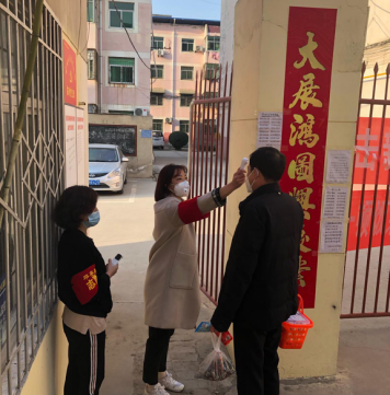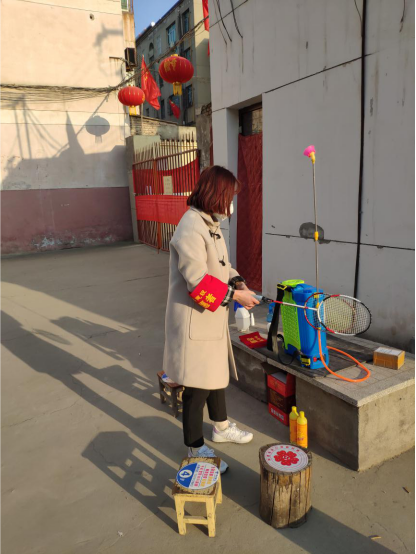 足球学院2019级3班刘欣,在陕西省渭南市华州区古城小区担任疫情防控志愿者,主要负责小区人员出入登记体温测量,地面消毒等工作。