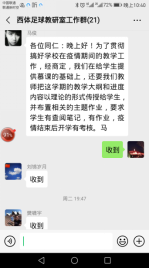 【二】抗“疫”初期,足球学院将首期《国际足球理论与实践》转发给学生们,积极响应学校关于“停课不停学,学习不延期”的号召。师生们在线上切磋琢磨,教学相长。
