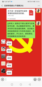 【四】抗“疫”期间,足球学院辅导员无论身在何地、人在何方,始终与学院想在一处、干在一块。从疫情通报到防护引导,从信息摸排到危机防控,从心理支持到学业生活帮扶,都未曾缺席。