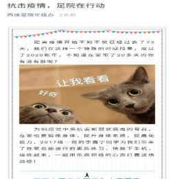 【三】抗“疫”期间,足院公众平台为同学们推送关于“担使命,保安康,做健康践行者,足院在行动”’主题教育的公众号,引领同学们放假期间要注意安全,做一个有担当的万象城学子。