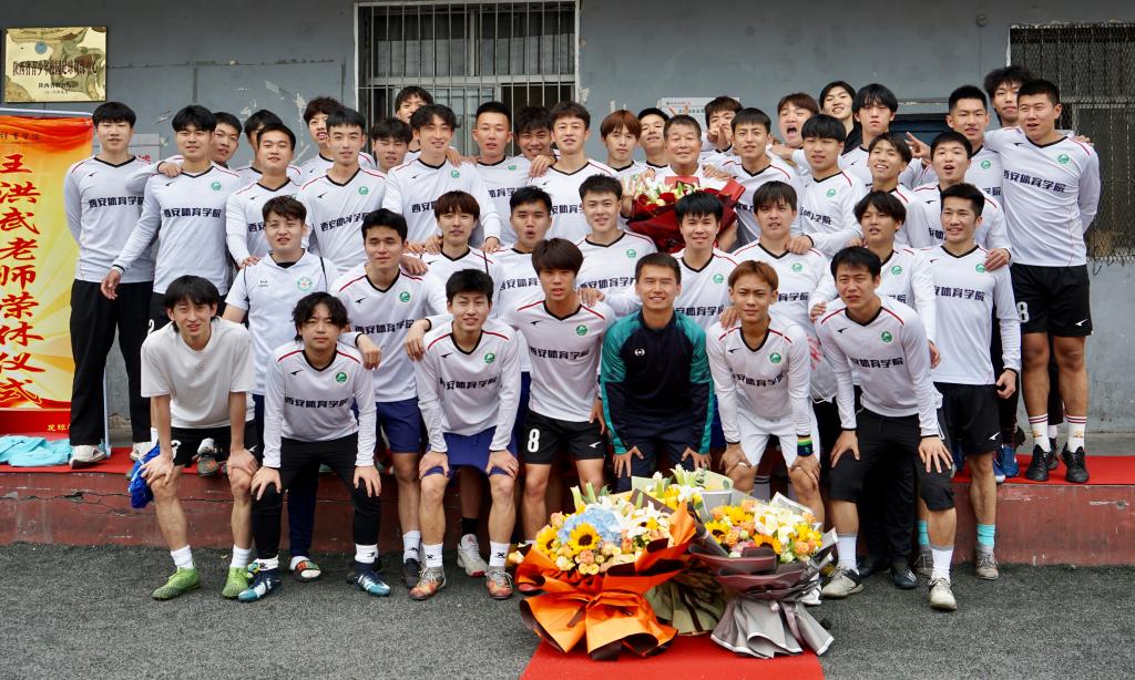 4月29日中午,足球学院为王洪武老师在足球场举办了荣休仪式,校党委副书记、纪委书记赵军出席,校工会副主席张建武、离退休工作处处长杨毅谋、二级教授黄谦博士、运动训练学院处级组织员宋文杰、足球学院党总支书记姜梅、足球学院院长席海龙、足球学院副院长方程以及足球学院师生参加了仪式,仪式由足球学院党总支书记姜梅主持。
