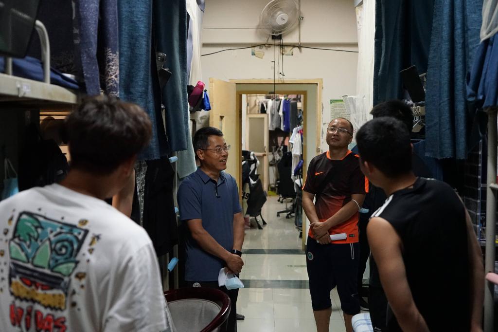 为进一步了解学生学习生活环境,加强学生宿舍安全管理,近日,足球学院联系校领导校党委副书记、纪委书记、监察专员杨芳乾,院长席海龙,学工办副主任李阳,辅导员田森4人深入学生宿舍走访检查,亲切看望我院学生。
