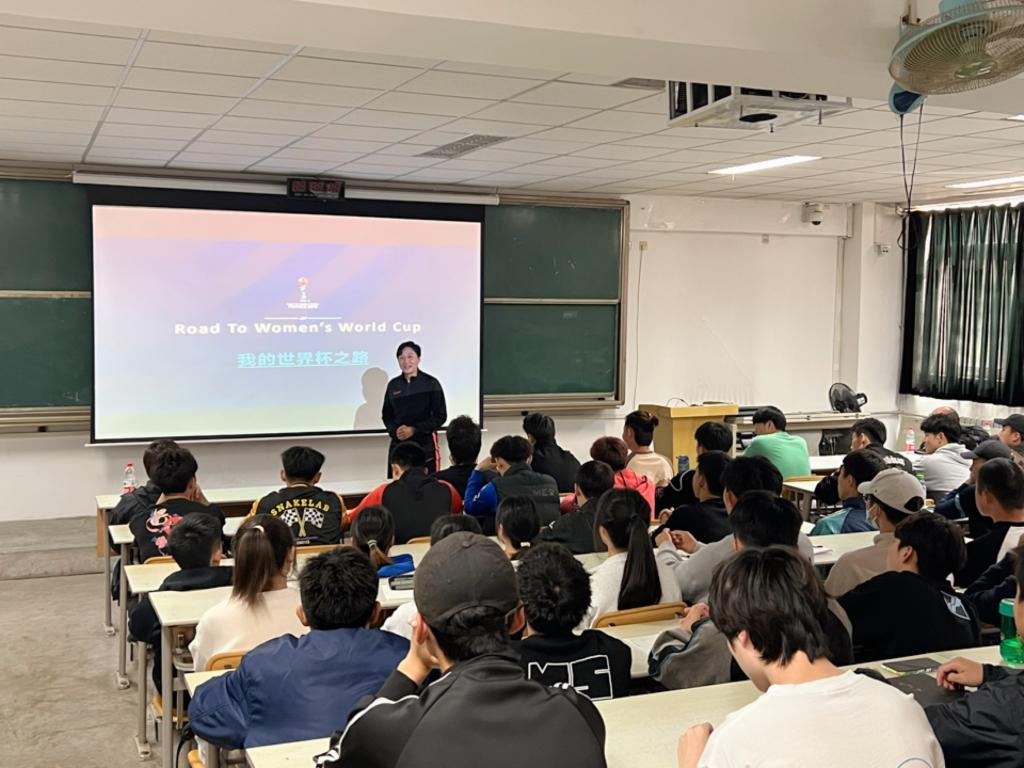 为进一步丰富学生第二课堂活动,提升学生专业技能,我院特邀北京体育大学足球学院教师,曾执法法国女足世界杯的国际级足球裁员秦亮于4月10日上午10点在教学楼202教室做了题为《我的世界杯之路》的专题讲座。足球学院部分教师,2020级、20201级学生参加了讲座。讲座由院长席海龙主持。