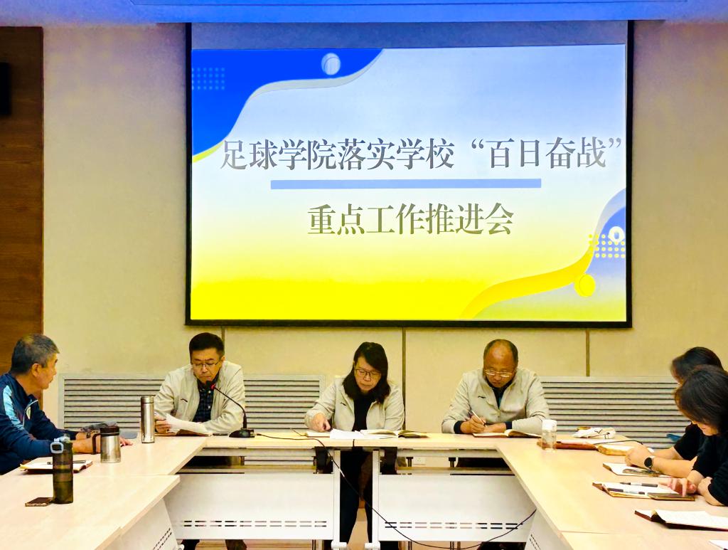10月27日晚,足球学院在二号行政楼六楼4号会议室召开落实学校“百日奋战”重点工作推进会,院长席海龙、副院长方程、以及学院全体教职工参会,会议由党总支书记姜梅主持。