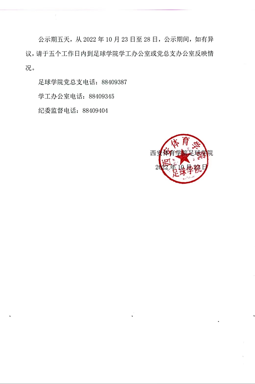 足球学院2022—2023学年周梦璐等19名国家励志奖学金获得学生名单公示
