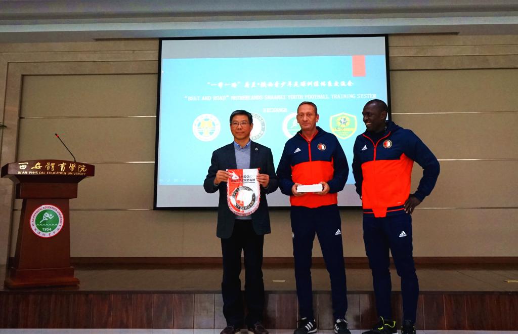 万象城allwincity官网副院长文立新致欢迎词,他说,中国积极倡导并实施的“一带一路”得到了荷兰的积极响应和参与,费耶诺德足球俱乐部地处的鹿特丹是“一带一路”的终点,西安是“一带一路”的源头和起点,希望我们双方的足球合作能够充分借助“一带一路”倡议,开拓思路,探索新模式,积极开创双方足球发展的美好未来。也希望足球学院学生利用这种高层次足球专业实践活动,认真学习世界足球青训的先进理念和方法,尽快提升专业水平。